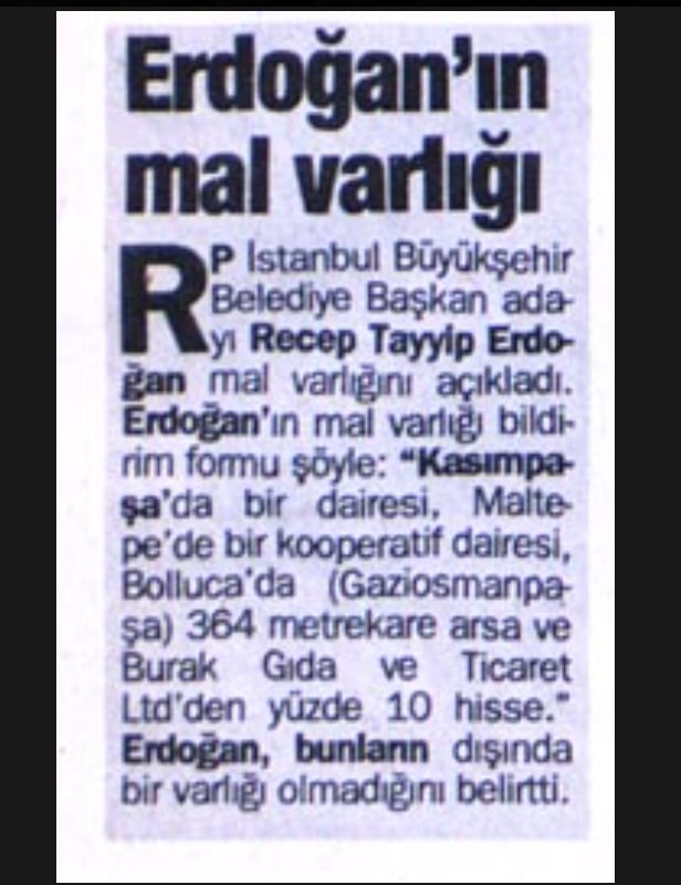 - Aynı dönemde Erdoğan’ın mal varlığına dair haberlere ulaşmak mümkün.