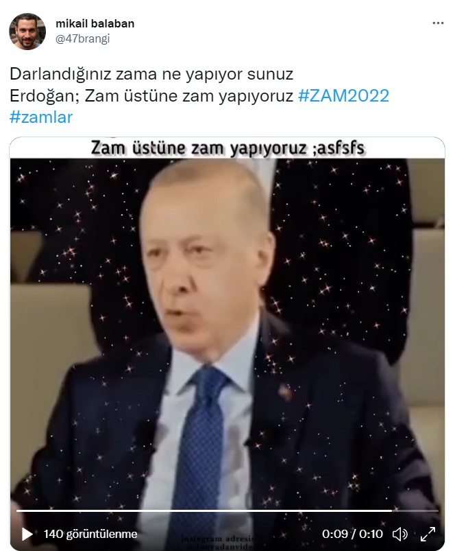 Cumhurbaşkanı Erdoğan’ın, daraldığında ne yaptığı sorulduğunda “Zam üstüne zam yapıyoruz” yanıtını verdiği bir video dolaşıma girdi.