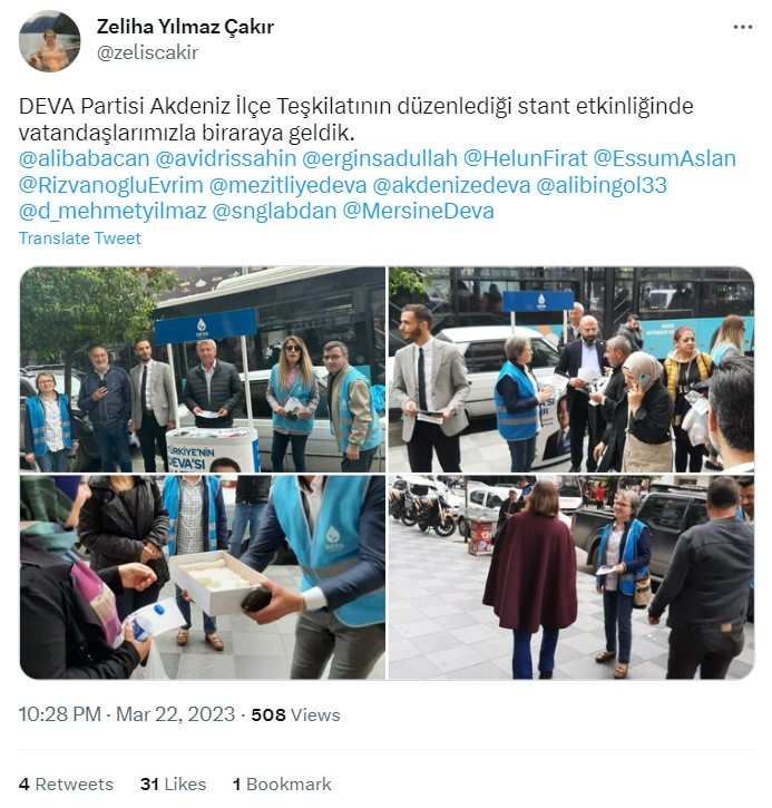 Deva Partisi Genel Başkan Yardımcısı Mehmet Emin Ekmen, Mersin Kadın Çalışmaları İl Başkan Yardımcısı Songül Abdan, 28. Dönem Mersin Milletvekili Aday Adayları Zeliha Yılmaz Çakır, Güran Dinçer ve Nesrin Türk Bostancı açıklama yapan isimler arasında yer alıyor.