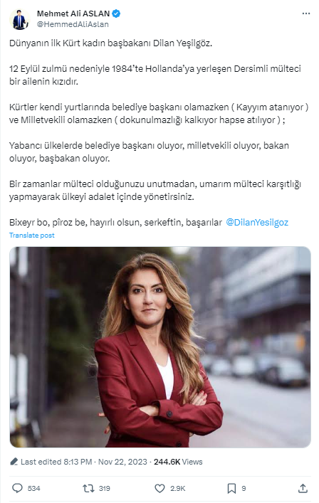 — Dilan Yesilgöz – Zegerius (@DilanYesilgoz) November 22, 2023