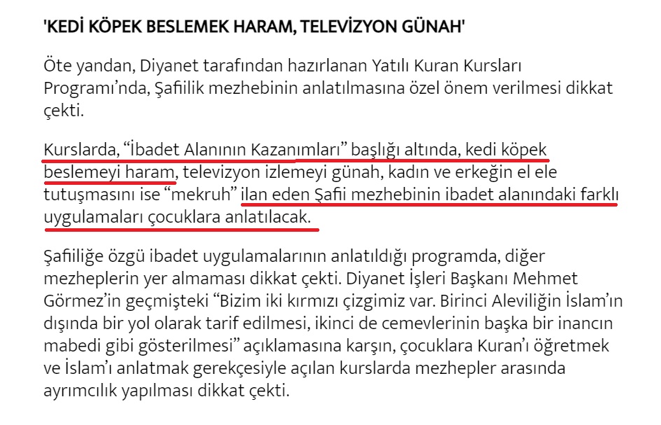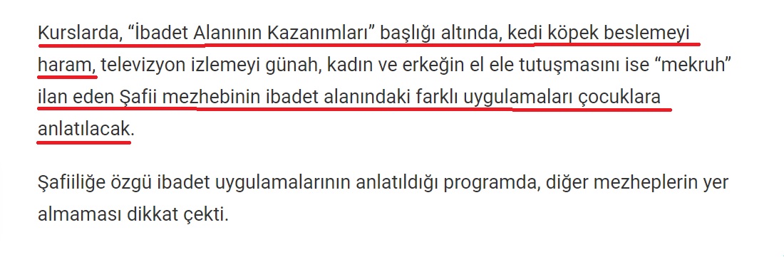 - Söz konusu iddia fetvaya değil, kuran kursu ders programının içeriğine dayanıyor.