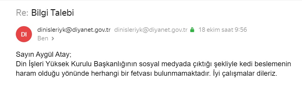 Diyanet’ten söz konusu iddiaya ilişkin bilgi talebinde bulunduk. Diyanet’ten aldığımız yanıtta, Din İşleri Yüksek Kurulu Başkanlığı’nın kedi beslemenin haram olduğuna dair bir fetvası bulunmadığı belirtildi.