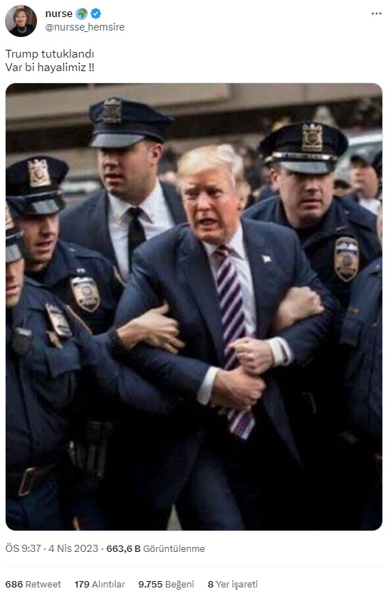 ABD eski başkanı Donald Trump ifade vermek üzere gözaltına alınmış ve uluslararası basında epey gündeme gelmişti. Trump’ın ifade vermeye götürüldüğü anı gösterdiği iddia edilen görüntü, sosyal medyada çok konuşulmuştu.