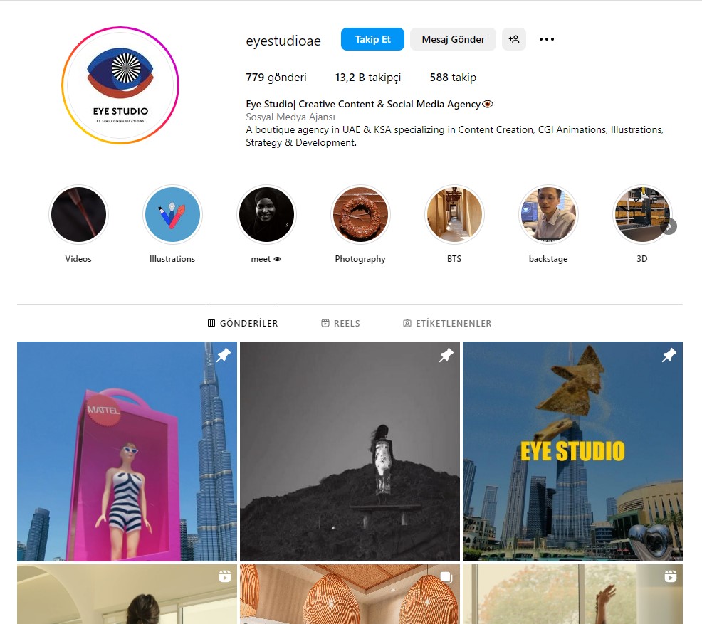Instagram biyografisinde kendilerini ‘içerik oluşturma, CGI animasyonları, çizimler, strateji ve geliştirme alanlarında uzmanlaşmış bir butik ajans’ olarak tanımlayan Eye Studio’nun portfolyosunda bunun dışında başka CGI tasarımlara da rastlamak mümkün.