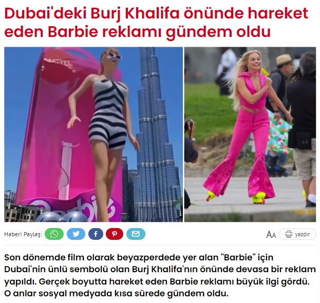 Dubai’de Barbie filminin 3 boyutlu reklam gösteriminin yapıldığı iddiası