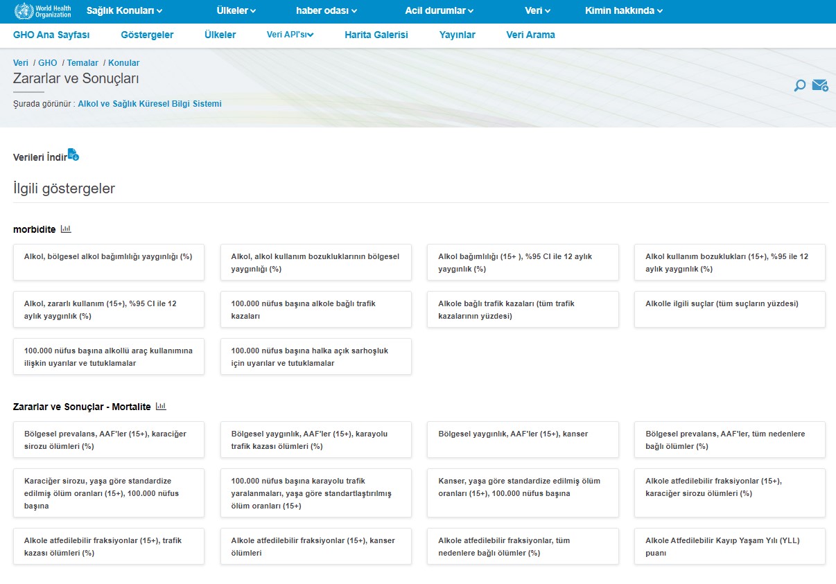 Dünya Sağlık Örgütü’nün, Alkol ve Sağlık Küresel Bilgi Sistemi mevcut. Bu sistem ile alkol tüketiminin yanı sıra bu alışkanlığa bağlı zarar ve eğilimler de izlenebiliyor.