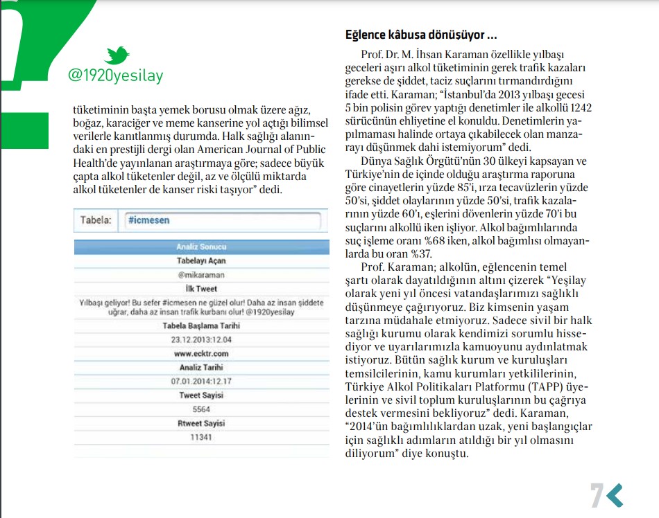 Bu iddiaya 2008’den sonra da Yeşilay’ın sosyal medyasından ve dergisinden ulaşabiliyoruz.