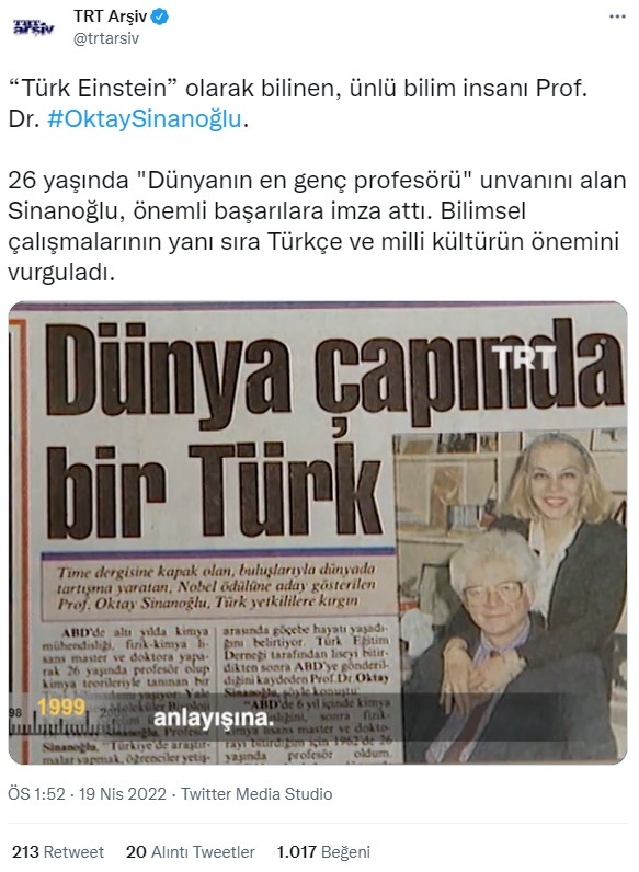 Türk Einstein olarak tanınan Oktay Sinanoğlu, sosyal medyada sıklıkla bir iddiaya konu oluyor. Sinanoğlu’nun dünyanın en genç profesörü olduğu söyleniyor. Söz konusu iddiayı haber siteleri ve sosyal medya kullanıcıları tarafından paylaşıldığını görmek mümkün.