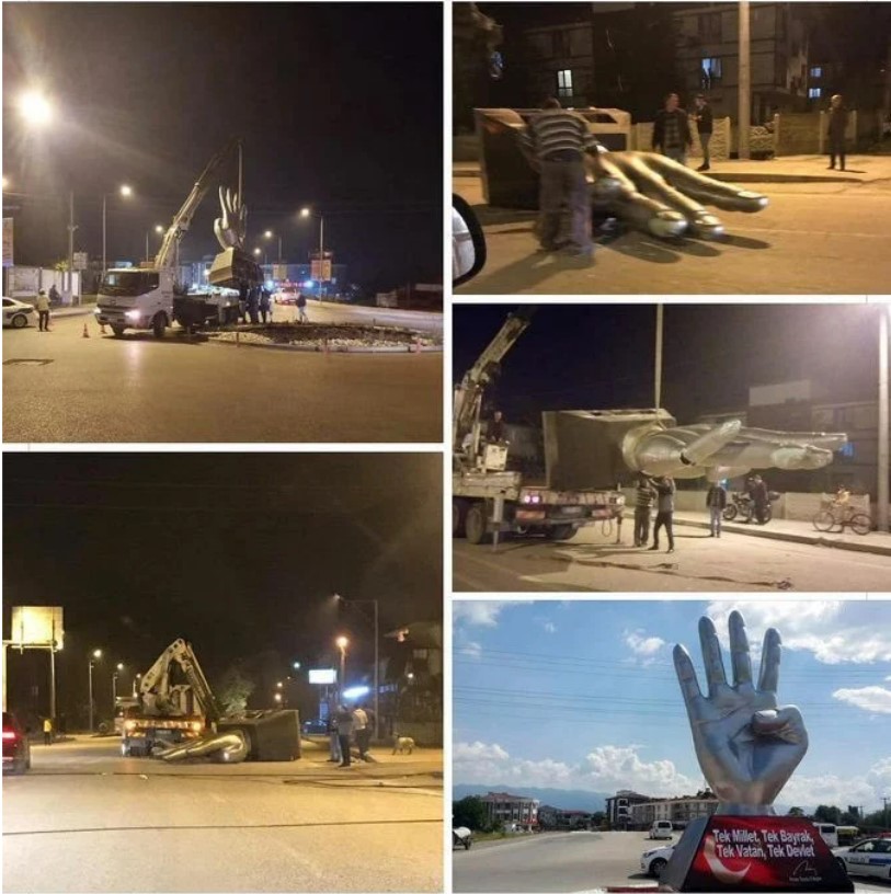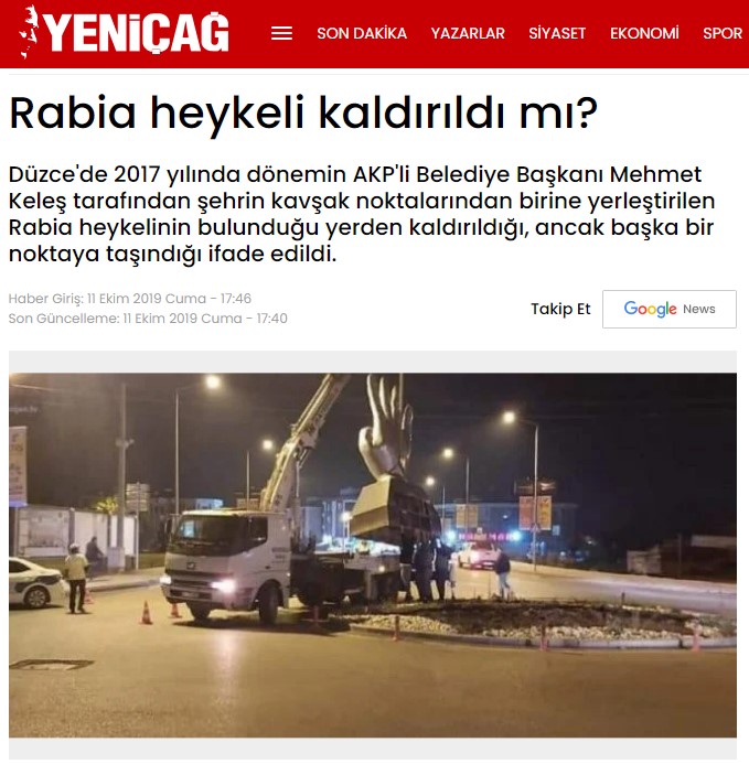 - Rabia heykelinin kaldırılma görüntüsü güncel değil, 2019 yılında yaşanan olaya ait.