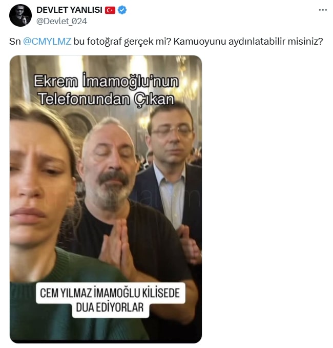 Ekrem İmamoğlu, Cem Yılmaz ve Serenay Sarıkaya’yı kilisede dua ederken gösteren fotoğraf gerçek mi?