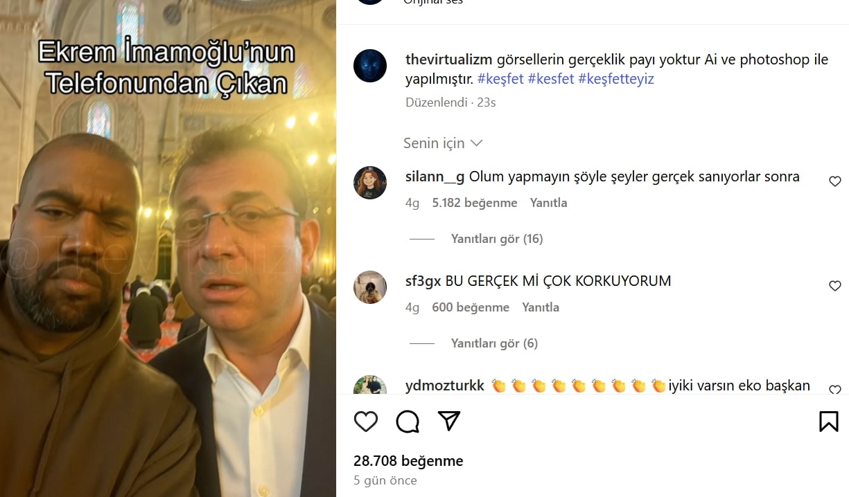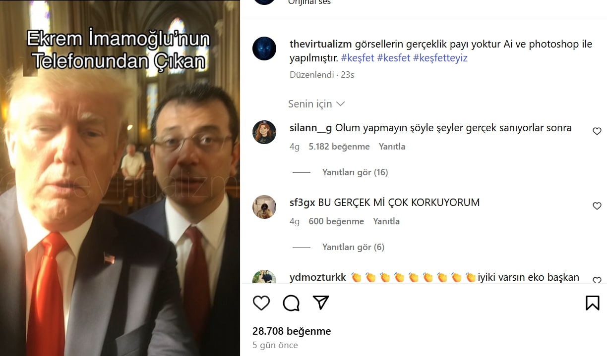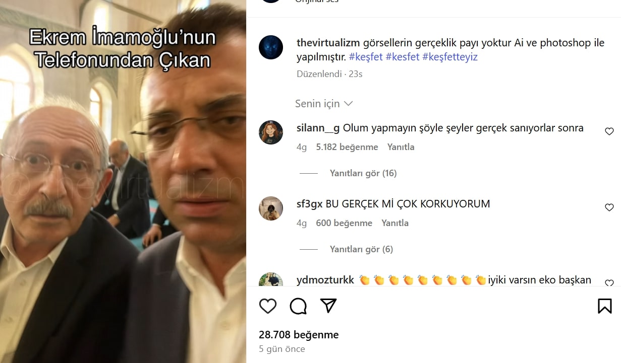 İddiada kullanılan görsel de 6 Mayıs 2025’te “Ekrem İmamoğlu’nun telefonundan çıkan” başlığı ile sıralanan yapay zeka ürünü görsellerin arasında yer alıyor. Paylaşımın açıklama kısmında, “görsellerin gerçeklik payı yoktur Ai ve photoshop ile yapılmıştır” notu yer alıyor.
