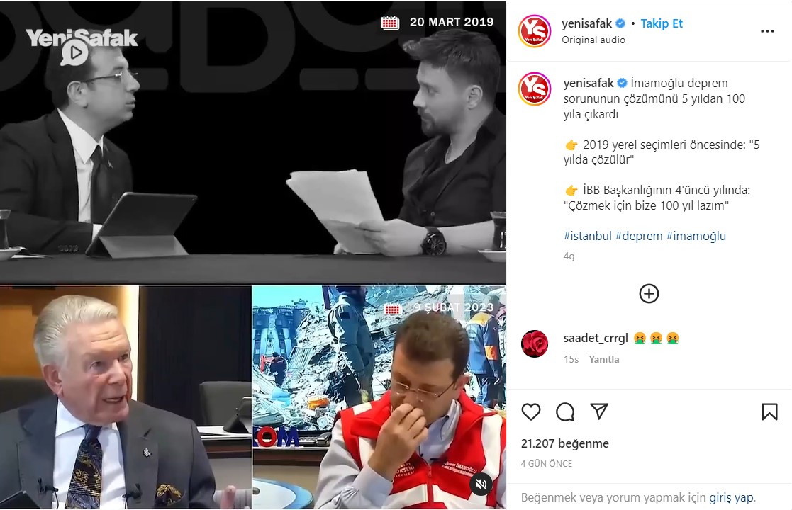 - Video, Uğur Dündar’ın 9 Şubat 2023’te Ekrem İmamoğlu ile yaptığı deprem özel yayınından alınmış.
