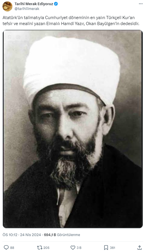 Yazımın sonunda “Şimdi, merak ettiğim bir husus daha var: Elmalılı Hamdi Efendi’nin vârislerinin, meselâ büyük âlimin torunlarından olan sevgili Okan Bayülgen’in dedelerinin eserinin bu hâle getirilmesini öğrendiklerinde ne düşünecekleri ve ne yapacakları…” diyordum.