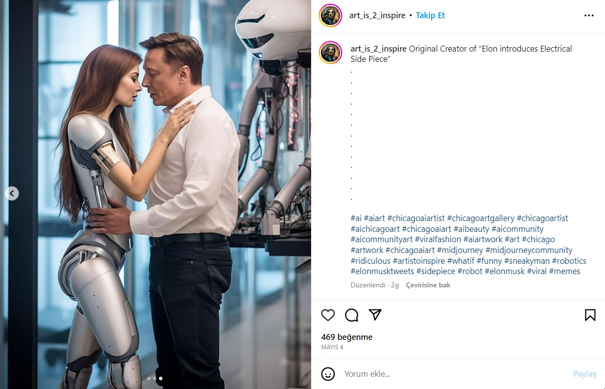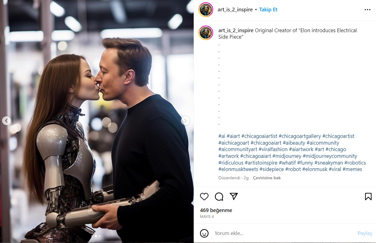 Ayrıca Instagram kullanıcı adı art_is 2_inspire olan hesapta da ilgili fotoğraflara ulaşıyoruz. Dijital içerik üreticisine ait profil incelendiğinde paylaşılan fotoğrafların yapay zekayla oluşturulduğu görülüyor. Fotoğrafları oluşturan hesap, açıklamada bulunarak fotoğrafların AI ile oluşturulduğunu da doğrulamış. Ayrıca kullanıcının Twitter ve Facebook sosyal medya hesapları incelendiğinde AI uygulamalarıyla oluşturulan birçok fotoğrafı görmek mümkün.