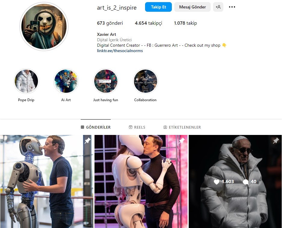 - Fotoğrafın paylaşımının yapıldığı sosyal medya hesabında yapay zeka uygulamalarıyla hazırlanmış birçok farklı görsel var.