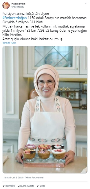 Emine Erdoğan’ın ‘Porsiyonları küçültelim’ çağrısı gerek haberlerde gerek ise sosyal medyada tepki çekti. Konu, Tele 1’in haberinde “Yoksulluğa Emine Erdoğan formülü: Porsiyonları küçültün az yiyin” başlığıyla yer aldı. Twitter’da #PorsiyonlarıKüçültün ve #Emineerdoğan gibi etiketlerle gündem oldu.