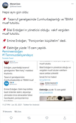 Sosyal medyadaki paylaşımlarda, konu ülke bazında başka konularla ilişkilendirilerek farklı bağlamlarda eleştirildi. Emine Erdoğan’ın küresel bir sorun olan gıda israfına yönelik yaptığı çağrı ülkenin ekonomisi ile ilişkilendirildi.