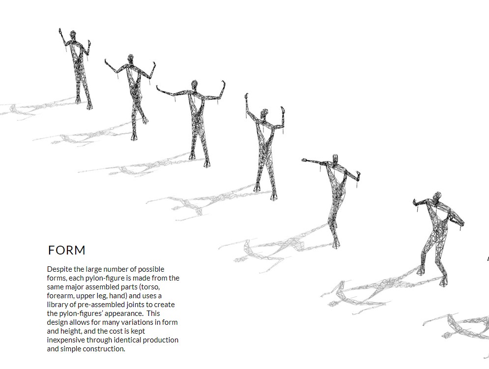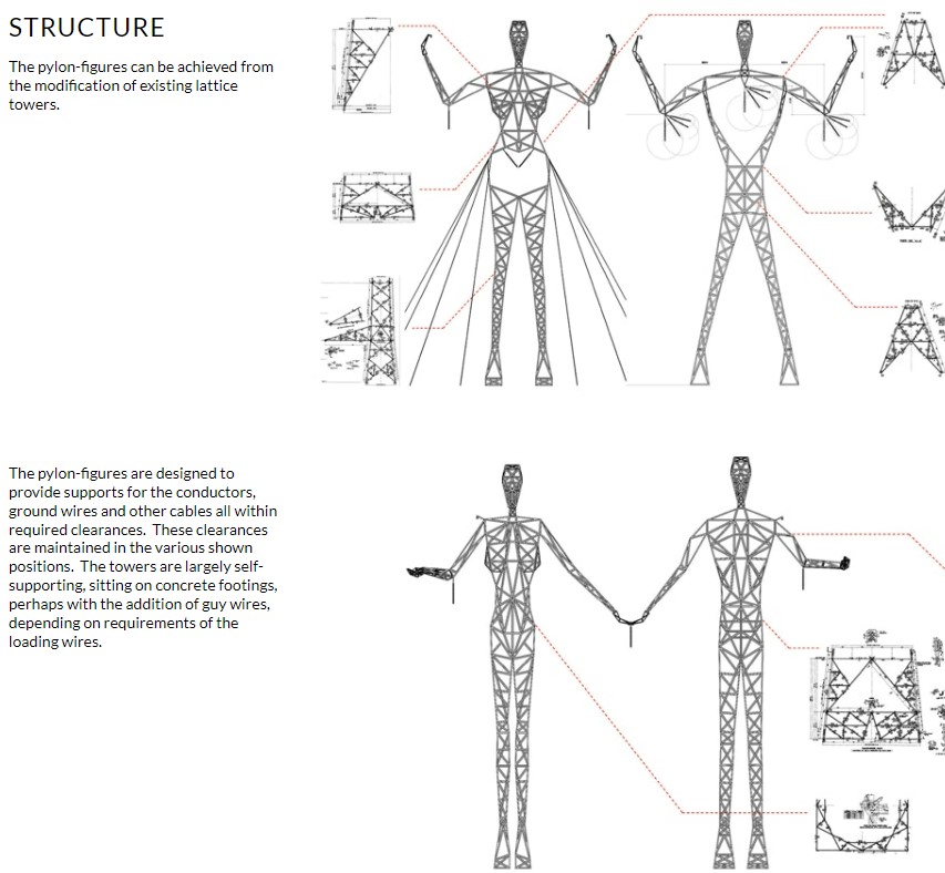 İyi kurulmuş çelik çerçeveli kule tasarımında sadece küçük değişiklikler yaparak, güçlü, ciddi ve değişken bir dizi kule yarattık. Bu ikonik elektrik direği figürleri, peyzajda anıtlar haline gelecek. Direk figürlerini görmek unutulmaz bir deneyime dönüşecek ve kuleleri yalnızca bir gereklilik fonksiyonel tasarımından daha fazla bir şeye yükseltecek.