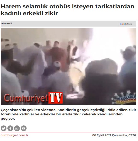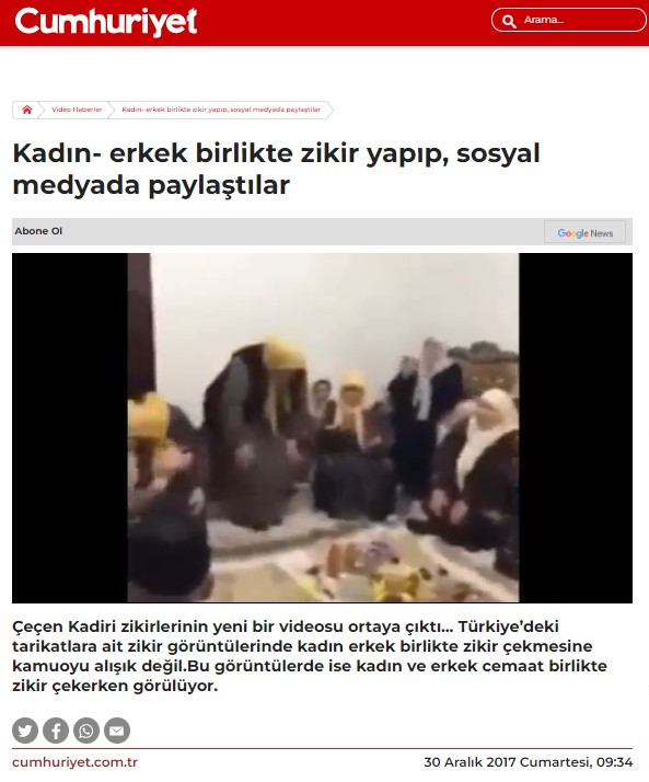 Konuya yönelik araştırma yaparken 2017 ve 2020’de Çeçenlere ait olduğu belirtilen benzer zikir videolarının haber sitelerinde ve YouTube’da paylaşıldığını gördük.