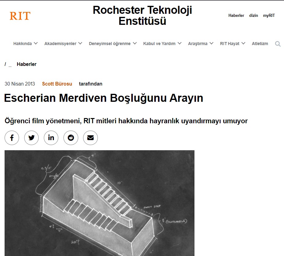Üniversitenin web sitesinde de viral video ile ilgili bir makale yer alıyor. Makalede merdiven, RIT mitleri arasına gösterilmiş.