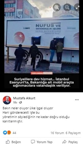 Şubat 2022’den bu yana İstanbul, Esenyurt’taki Mobil Nüfus Hizmet Araçları ile ilgili bir iddia yayılımda. Sosyal medyada, tek bir fotoğraf eşliğinde paylaşılan iddiaya göre bu mobil araçlar, sığınmacıların vatandaşlık işlemlerini kolayca halletmeleri için üretildi.