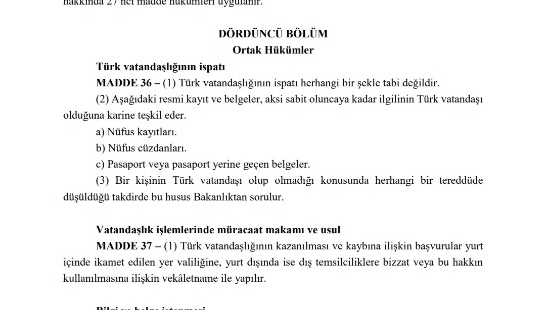 Kanun, Türk vatandaşlığı için ilgili ilin valiliklerine başvuru yapılması gerektiğini belirtiyor.