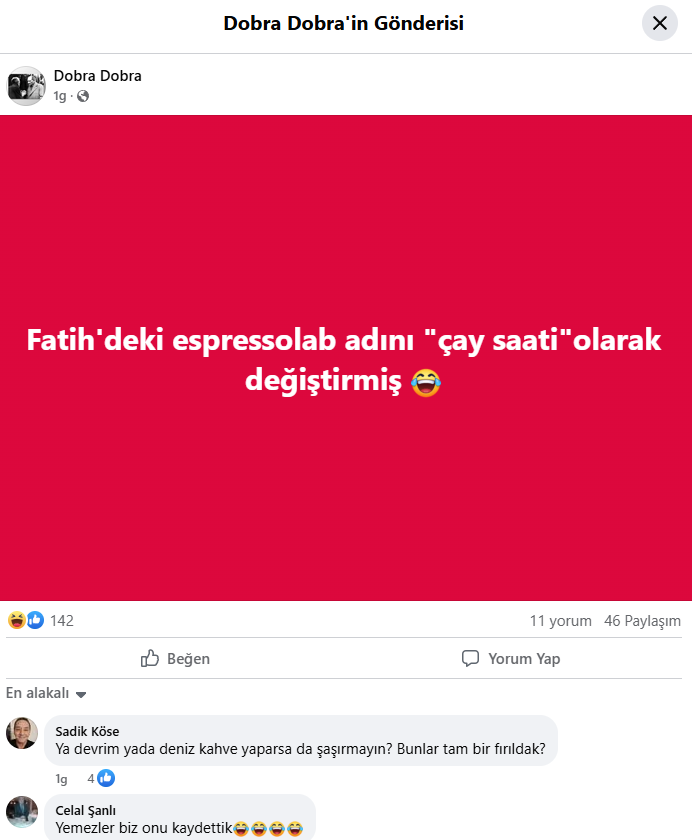 Sonuç olarak Fatih Espressolab’in boykot çağrısından sonra ismini Çay Saati ile değiştirdiği iddiası doğru değil.