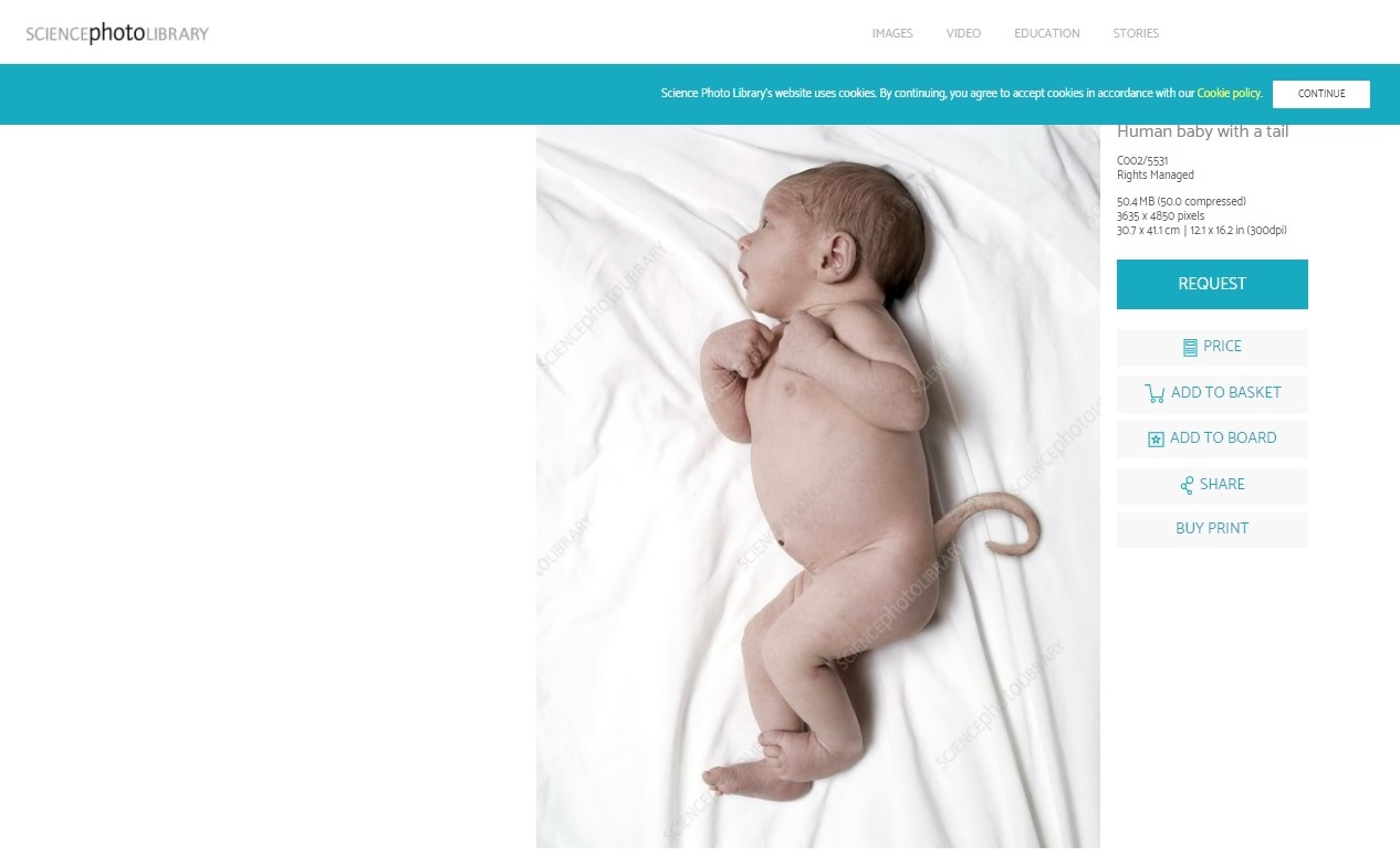 Kuyruklu bebek görseli dijital ortamda oluşturulmuş. Tersine görsel arama yöntemi kullanarak bu bilgiye ulaşmak mümkün. Görselin yüklendiği ilk tarih 2009 yılıdır. Fotoğraf, dijital sanatçı Larry Dunstan tarafından oluşturulmuş. Sanatçının buna benzer başka eserlerine buradan ulaşabilirsiniz. 2009’da Science Photo Library adlı sitede dijital yöntemlerle oluşturularak yer alan görsel, zaman içinde farklı biçimlerle dolaşıma girmeye devam ediyor.