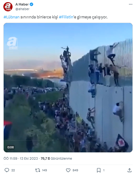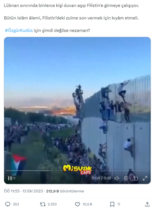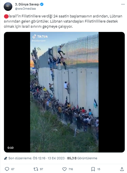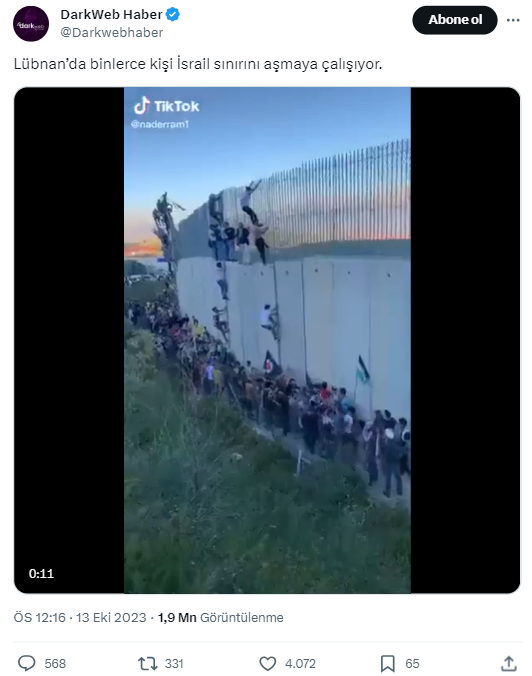 Sosyal medyada saldırıların ilk başladığı günden bu yana pek çok yanıltıcı bilgi paylaşıldı ve gündeme geldi. Geçtiğimiz günlerde yayılımda olan bir videoda Lübnan’da binlerce kişinin İsrail sınırını aşmaya çalıştığı iddia edildi.