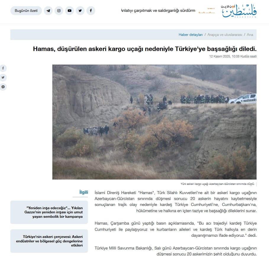 Filistin’in Gürcistan’da düşen uçakta şehit olan 20 askerimiz için taziye mesajı yayınlamadığı iddiası