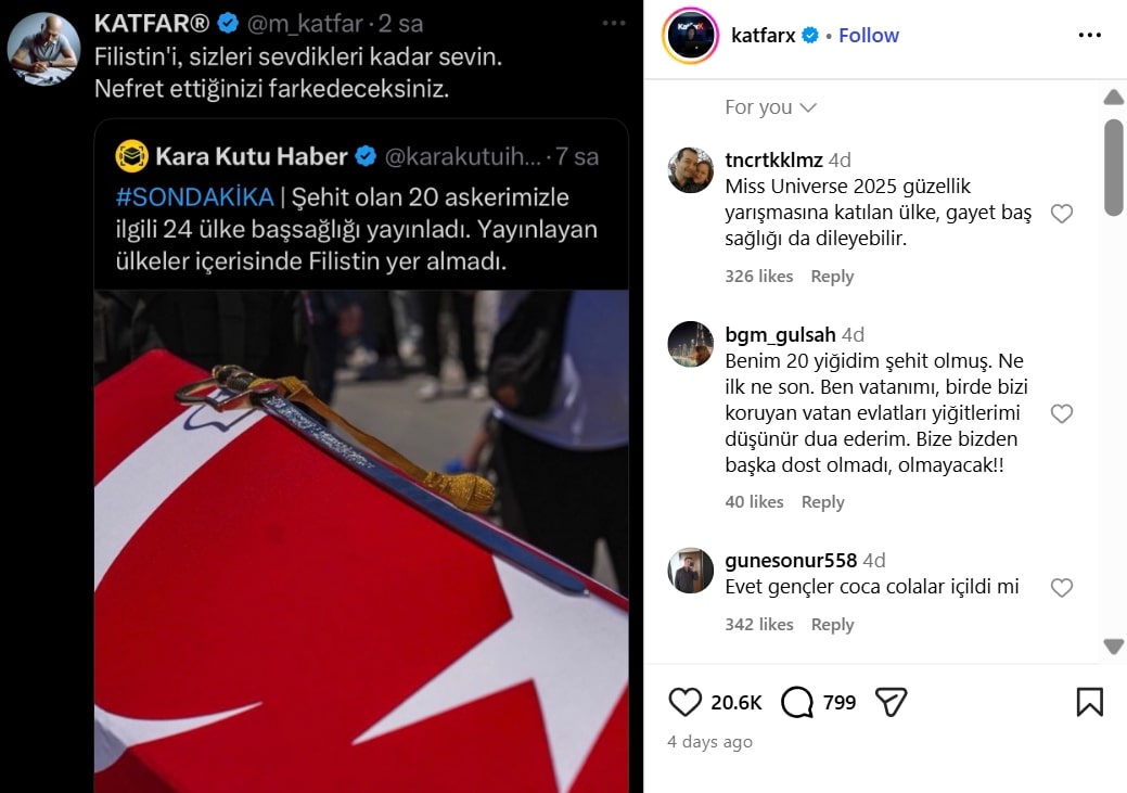 Dışişleri Bakanlığının X hesabından, 13 Kasım’da yayımlanan taziye mesajını görmek mümkün.