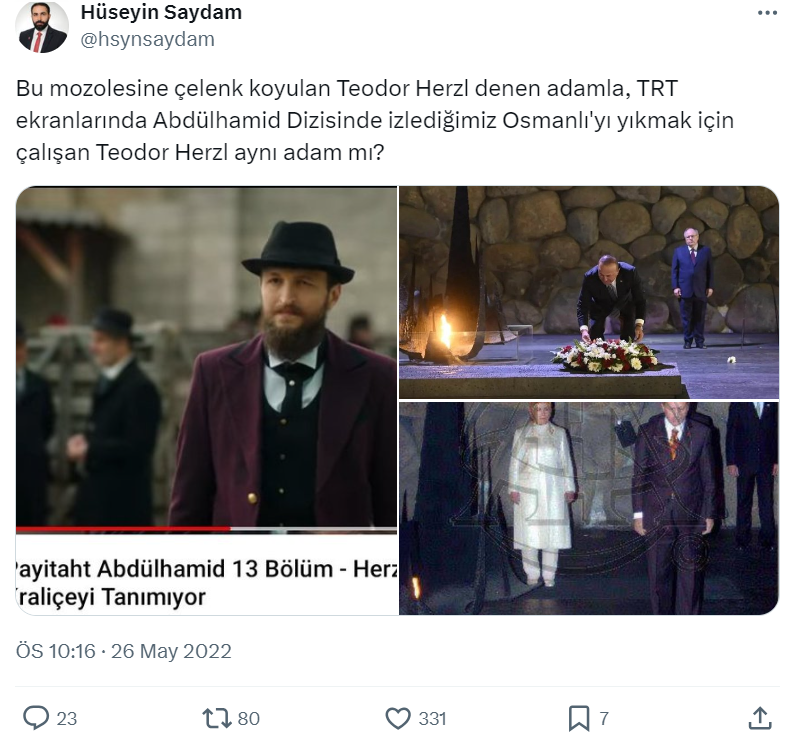 Doğrula olarak Theodor Herzl ile II. Abdülhamit’in görüntüleri olduğu iddiasıyla paylaşılan bir videoyu da incelemiştik.