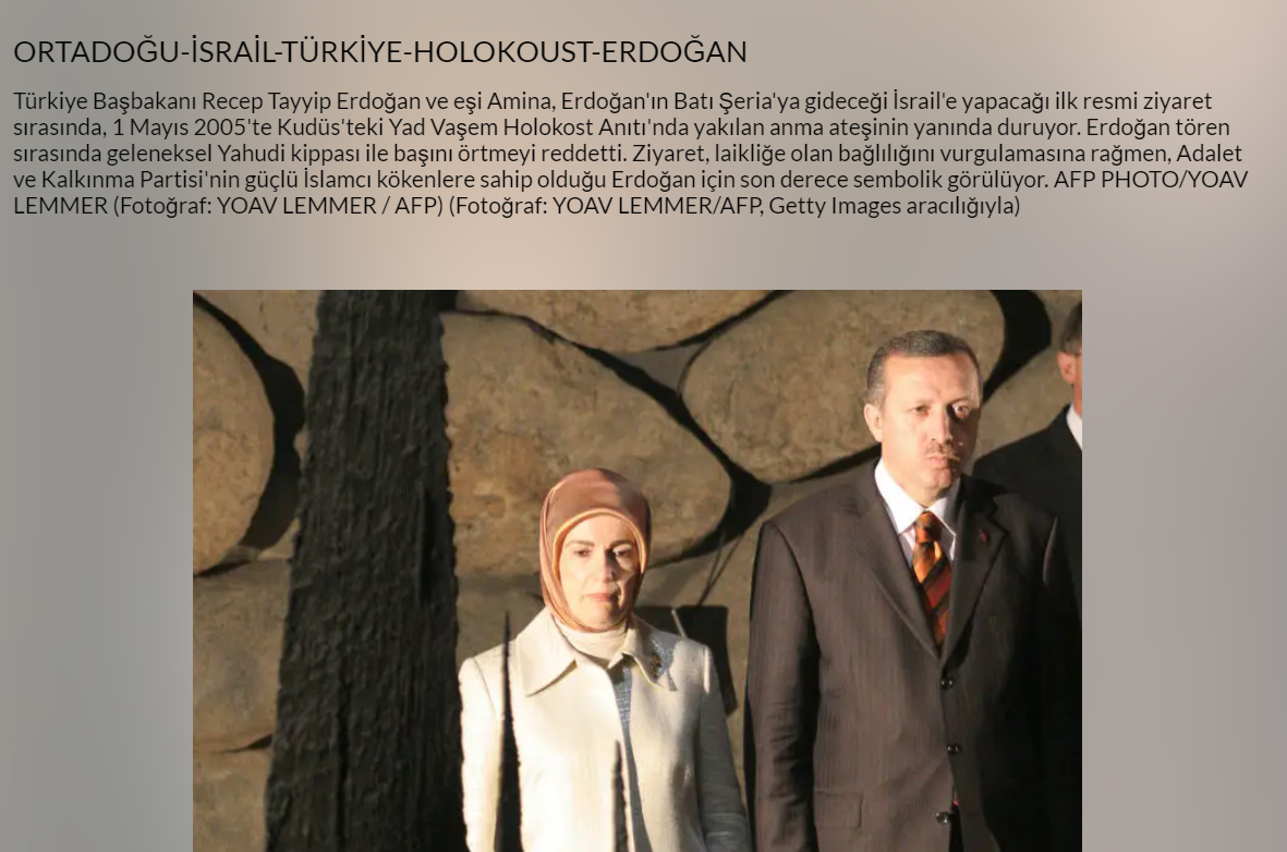 Ancak fotoğrafın çekildiği yer Theodor Herzl’in mezarı değil, Batı Kudüs’te bulunan “Yad Vashem” Yahudi Soykırım Anıt Müzesi. Yad, kelime anlamı olarak anmak; vashem ise “ve isim” anlamına geliyor. Yani Türkçe karşılığı “isimlerin anılması”.