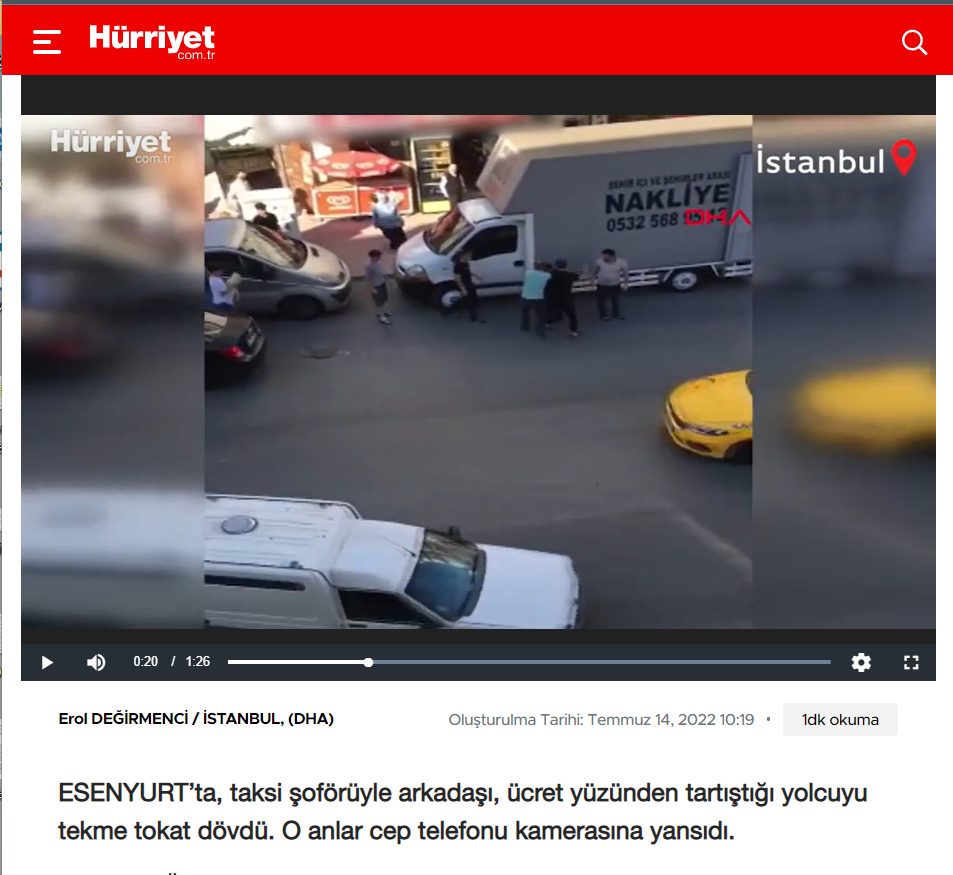 Paylaşımdaki görsel ise, 14 Temmuz 2022 tarihinde Esenyurt’ta bir taksici ile müşterisi arasında çıkan kavgaya ait haber görüntülerinde karşımıza çıkmakta. Cep telefonuyla kaydedilen videodan ekran görüntüsü alınmış.