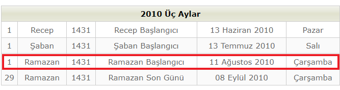 Ayrıca fotoğrafın çekildiği tarihte yani 2010 yılında Ramazan ayı 11 Ağustos-8 Eylül tarihleri aralığındaydı.