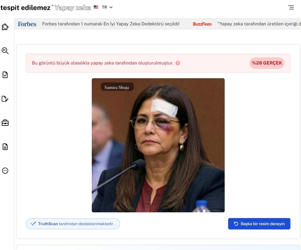 - Yapay zeka dedektörleri görselin gerçek olmadığı sonucunu gösterdi.