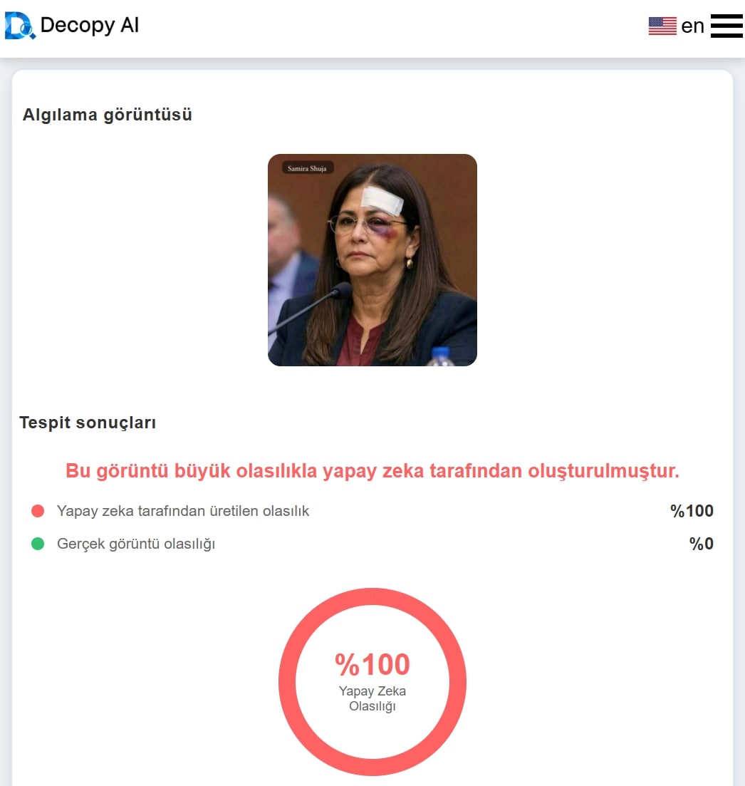 Bu görsel uyumsuzluk üzerine iddia görselini Undetectable ve Decopy Ai üzerinden tarattık. İki uygulama da görselin yapay zeka ile oluşturuldu sonucunu gösterdi.