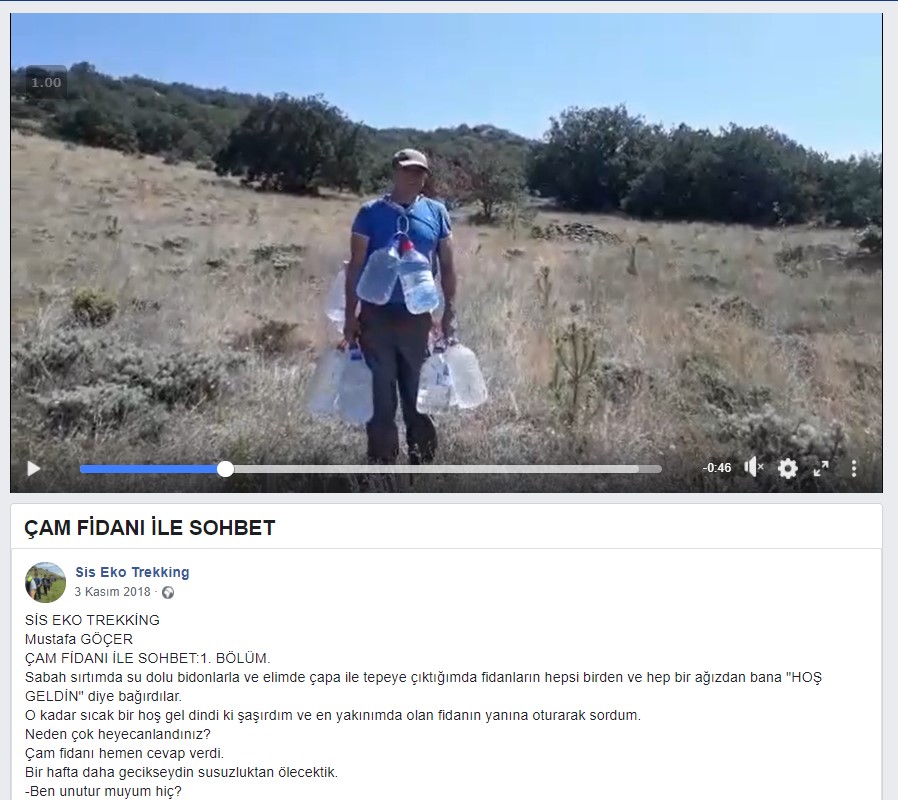Fotoğrafın detaylarını araştırdığımızda ise “Sis Eko Trekking” adlı bir facebook sayfasından paylaşılan “ÇAM FİDANI İLE SOHBET” başlıklı 3.11.2018 tarihli bir videoya rastladık. Sosyal medyadaki fotoğrafın aslında videonun çekildiği zamana ait olduğu anlaşılıyor.