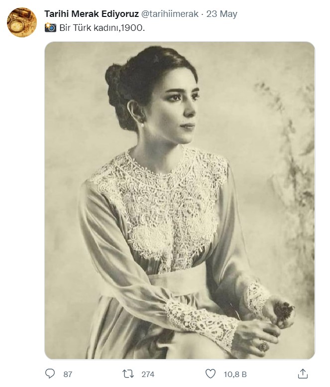 “Bir Türk kadını 1900” notuyla paylaşılan bu fotoğrafı inceledik.