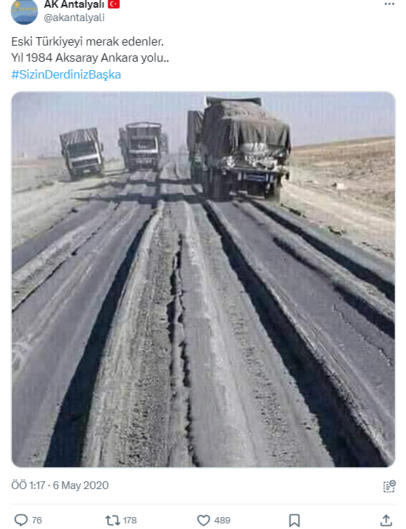 Birçok kez sosyal medyada paylaşılan bu fotoğraf geçmiş yıllarda da 1984 yılına ait Aksaray-Ankara yolunu gösterdiği öne sürülerek paylaşılmış.