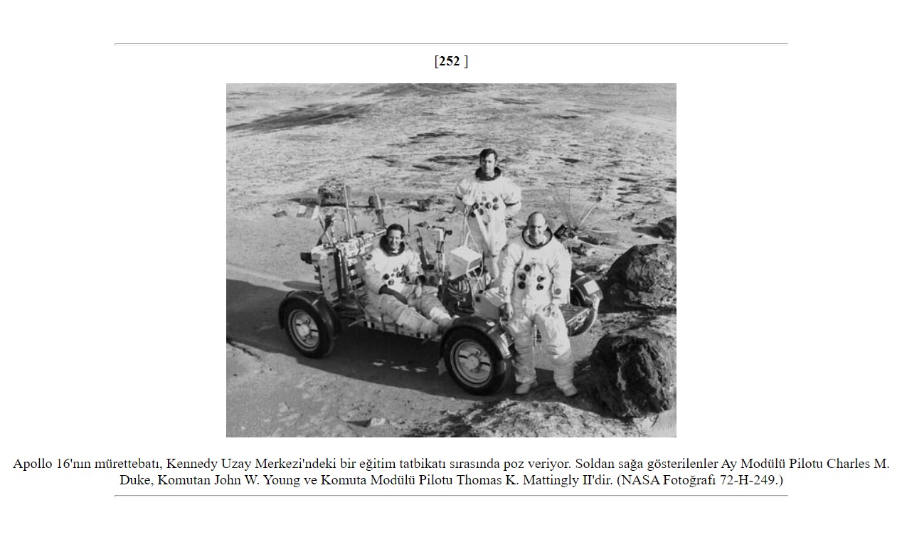 NASA’nın arşivleri incelendiğinde, Apollo 16 Uzay Görevi mürettebatının, uzay merkezinde antrenman yaptığı esnada bu fotoğrafın çekildiği belirtiliyor.