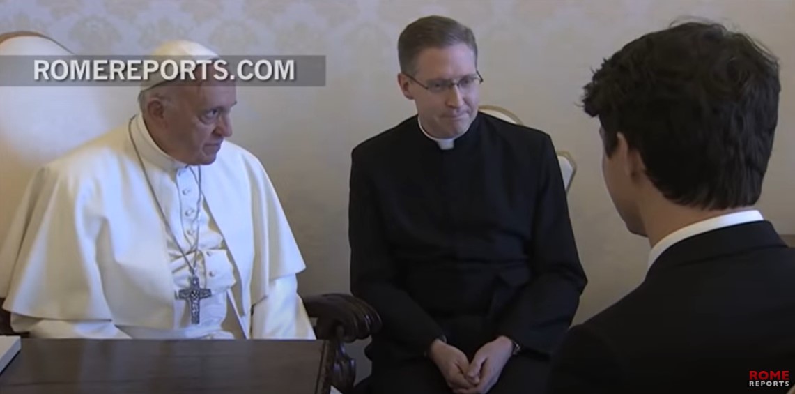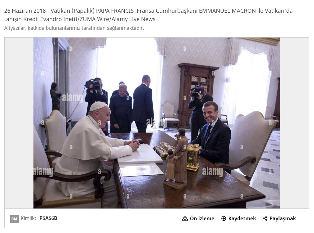 Görüşmeye ait videolarda Papa’nın karşısındaki sandalyenin başından beri denk olduğu, iddia fotoğrafının çekildiği anın da takip edilebildiği çok açık.