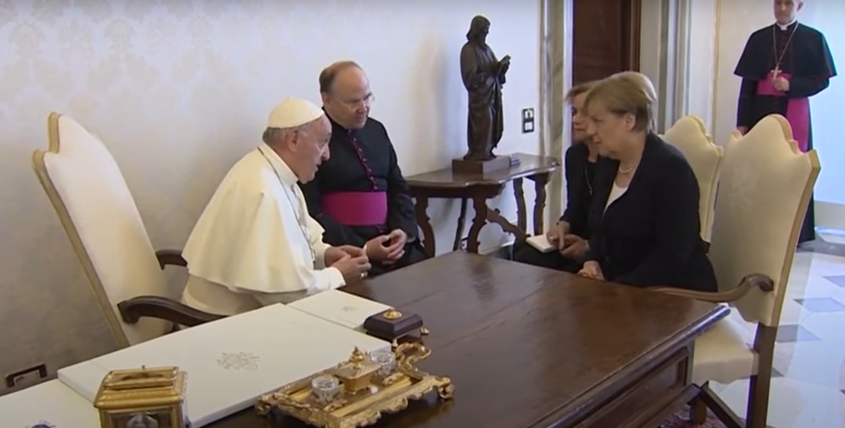 Papa’nın karşısındaki sandalyenin farklı ülke liderlerinde de aynı olduğu görülebiliyor.