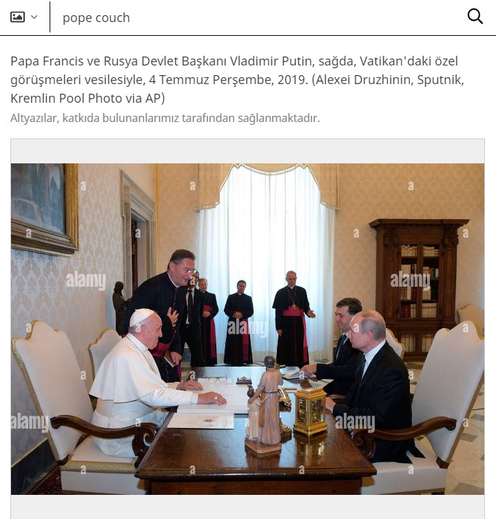 - Diğer görüşmelerde de denk sandalyeler olduğu ve Papa’nın yanında aynı sandalyenin bulunduğu görülüyor.