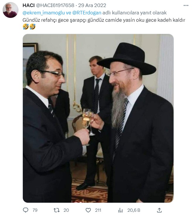 Fotoğrafın kaynağına ulaşmak için ‘Ekrem İmamoğlu’, ‘haham’ ve ‘kadeh’ gibi bazı anahtar kelimelerle konu araştırıldığında herhangi bir anlamlı sonuca rastlanmıyor.