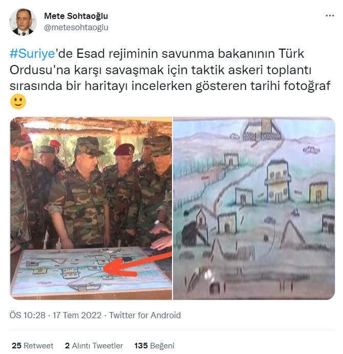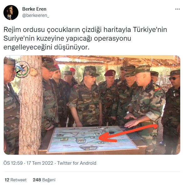 Sosyal medyada paylaşılan bir fotoğrafın, Türkiye’ye karşı operasyon düzenleyecek Esad rejiminin askerlerini gösterdiği iddia edildi. Askerlerin önünde görülen harita ile alay edilen paylaşımlar hızla dolaşıma girdi.