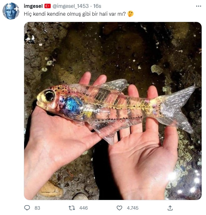 Twitter’da paylaşılan bir görüntüdeki balık türü de, bu sıra dışı fiziksel değişimlerden birini geçirmiş gibi görünüyor. Paylaşım sahibinin “Hiç kendi kendine olmuş gibi bir hali var mı?” açıklamasıyla yayılan bu görsel için, bazı kullanıcılar “Gerçek mi?” ya da “Balığın türü ne?” benzeri sorular sormuşlar.