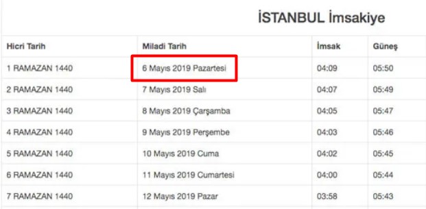İmamoğlu’nun mazbatayı aldığı gün İBB binasının önünde otobüsün üzerinde halka seslendiği gün çekilen fotoğraflardan olayın güncel olmadığı anlaşılıyor. Bunun yanında 2019’un Ramazan imsakiyesi incelendiğinde, Ramazan ayının 6 Mayıs’ta başladığını görüyoruz. Yani bu da fotoğrafın, 2019 Ramazan ayının başlangıcından 10 gün öncesinde çekildiğini gösteriyor.