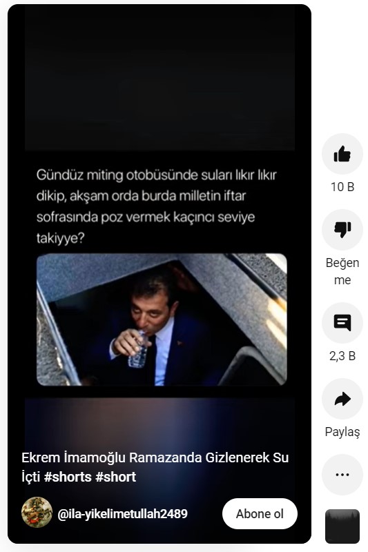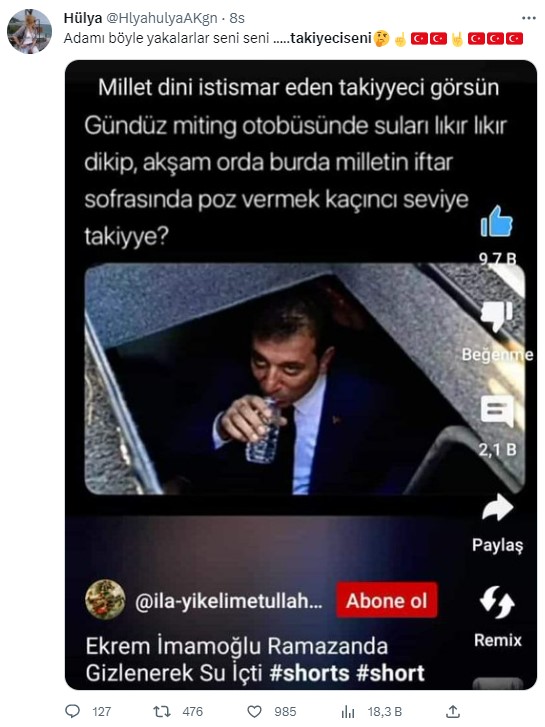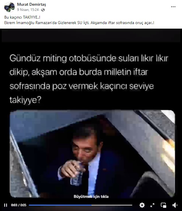 Geçtiğimiz gün kendisi hakkında sosyal medyada bir tweet yayılıma girdi ve kısa sürede binlerce etkileşim aldı. İddiaya göre paylaşılan fotoğraf, Ekrem İmamoğlu’nu Ramazan ayında gizlice su içerken gösteriyordu.