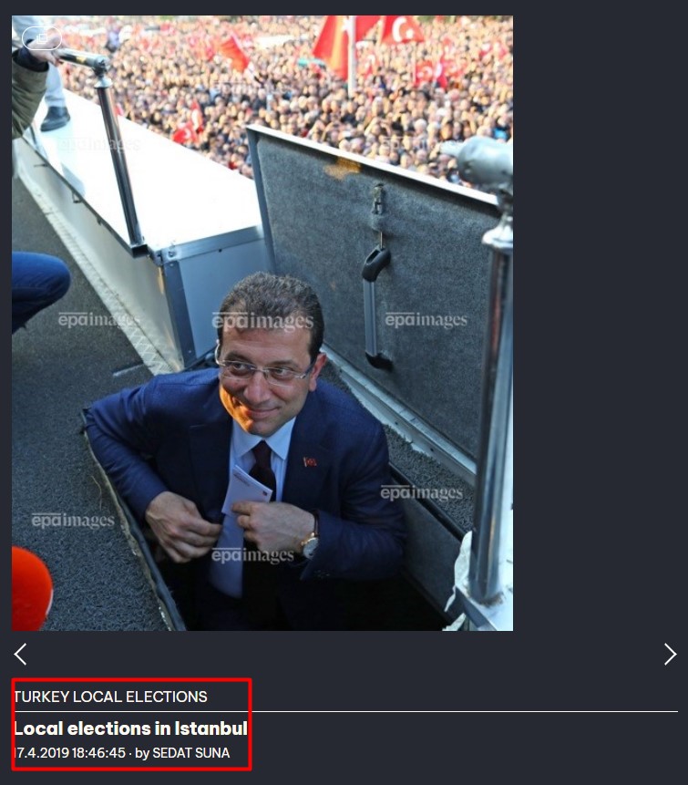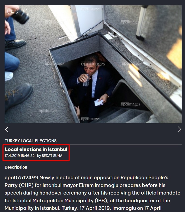 EPA’nın fotoğraf havuzu olan Epaimages.com web sitesinde “Ekrem İmamoğlu” yazıp “17 Nisan 2019” tarihini seçip filtreli arama yapıldığında, ilgili fotoğrafa ve sonrasına ait anların görüntüsüne ulaşmak mümkün.